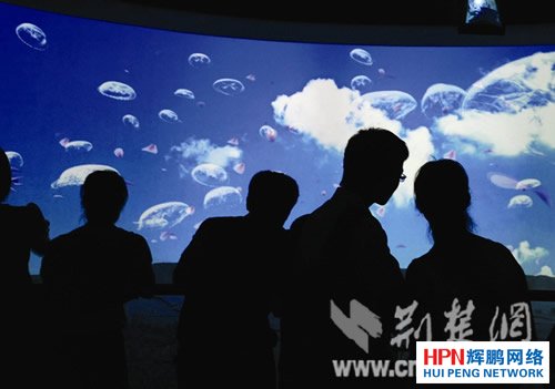 內容提要: 圖為:湖北館內的桃花水母是用高科技展示的光電魅影 記者佟建國 世博湖北館中,科技展示著古老文明的精粹,展示著現代生活的豐盛,和人們對未來生活的美好愿景