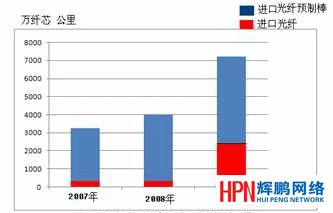 近三年光纖預制棒及光纖進口量