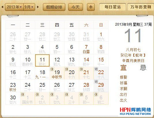 2013中秋國慶放假通知