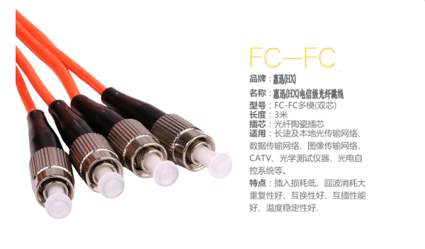 惠迅FC-FC光纖跳線為標準的3.0mm直徑光纖跳線,符合并超過ANSI / TIA / EIA - 568規范要求。