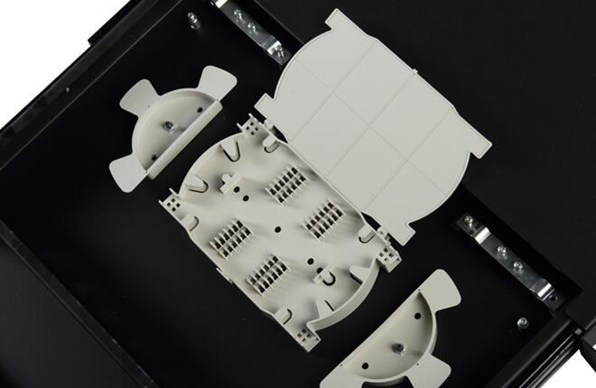 D-Link 光纖接線箱是設計用于建筑物內的光纜安裝,可為樓內主干及水平系統應用提供安全的管理。適用于通訊間或設備間的主干、水平系統的端接等。 D-Link 光纖接線箱內置光纖連接護板,允許光纜與現場安裝的光纖尾纖熔接,只占用1.75英寸空間,與ST適配器一起使用。保護光纜的端接和光纖連接器,便于光纜的維護管理。