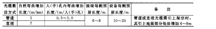 表  光纜敷設規定的預留長度
