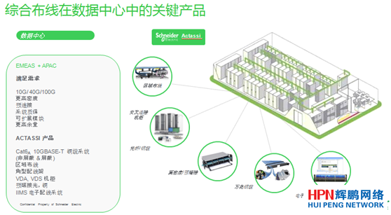 在數據中心領域,施耐德電氣可以給客戶提供的解決方案和產品包括精密空調、不間斷電源、樓宇控制、燈光控制和綜合布線產品等。其中,綜合布線產品在數據中心不同的區域都有相應的解決方案和產品,包括一些區域的布線和交叉的機柜,端到端的光纖和銅纜產品,以及預端接光纜的產品,還有電子配件架的產品,都有很好的解決方案和應用。