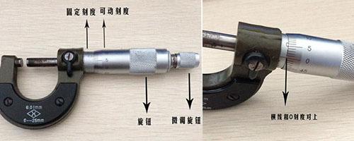 3、擰動千分尺的尾端的微調旋鈕,刻度線和0對的上就是準確的千分尺。