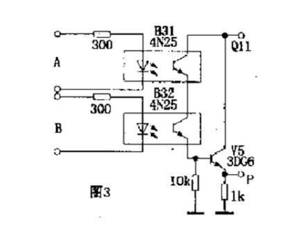 其邏輯表達式為P=A.B.圖中兩只光敏管串聯,只有當輸入邏輯電平A=1、B=1時,輸出P=1.同理,還可以組成“或門”、“與非門”、“或非門”等邏輯電路.