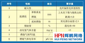 因為本標準規定的產品是無鹵阻燃光纜,所以對光纜性能上的要求重點放在無鹵和阻燃性能指標上。因此,本光纜標準要點是對無鹵阻燃護套料性能指標作出嚴格的規定,同時還應對無鹵阻燃光纜的阻燃性能進行全面試驗,以確保有無鹵阻燃要求的通信場所中的通信設備能安全可靠地運行。