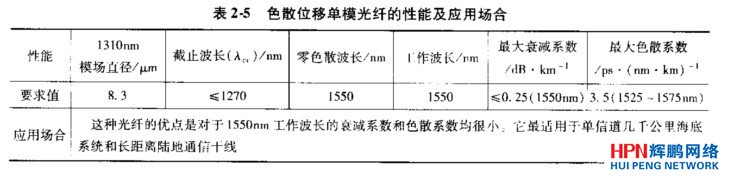 色散位移單模光纖的性能及應用場合見表