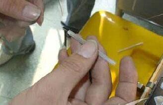 5、清洗光纖:在剝去光纖最里面保護套這前先裝入固定膠管。內部玻璃光纖在熔接時必須干凈無雜,因此在熔接工作開始之前我們必須對玻璃絲進行清潔。比較普遍的方法就是用綿花沾上酒精,然后擦拭清潔每一小根光纖。